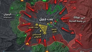 لوضع الميداني في بنت جبيل وفقا للخريطة المرفقة
