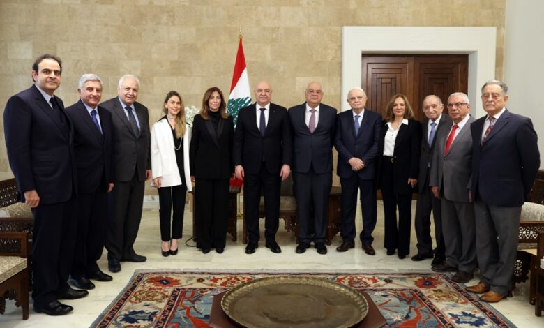 وفد بلدة دبل الحدودية: واستقبل الرئيس عون وفدا من بلدة دبل الحدودية، تحدث باسمه رئيس البلدية عقل نداف، الذي عرض الواقع الذي تعيشه البلدة حاليا، وقال: “نشكرك فخامة الرئيس على استقبالنا اليوم في ظل هذه الظروف الصعبة التي يمر بها بلدنا. ان زيارتنا اليوم هدفها نقل الصورة الحقيقية لما يحصل وما نعانيه في بلدتنا دبل، فمع بداية الحرب جميع الطرقات المؤدية الى البلدة اصبحت مقطوعة نظرا لخطورتها باستثناء طريق دبل – رميش التي بقيت سالكة بصورة شبه طبيعية، ما كان يؤمن دخول المساعدات الى البلدة لحين تقدم الاسرائيلي وتمركز على اطراف البلدة وفي الاحياء الخارجية، من ضمنها هذه الطريق، ما تسبب بقطعها فاصبحنا في عزلة كاملة عن العالم لا دواء لا مواد غذائية ولا مياه، كون التمركز في موقع البئر الارتوازي بحيث يتعذر الوصول لتشغيل المضخات وبالاخص انقطاع مياه الشرب بشكل تام. واصبح الاهالي البالغ عددهم حوالي ۱۷۰۰ شخص يعيشون معاناة يومية حقيقية ، هذا ما اضطر السكان للمخاطرة بحياتهم وسلوك طريق دبل رميش على مسؤوليتهم الشخصية للحصول على الادوية وغيرها لانقاذ عائلاتهم، حيث سقط لنا منذ أربعة ايام جريح نجى باعجوبة مع عائلته بعد قصف منزله الواقع على هذه الطريق. وامس سقط لنا شهيدان على