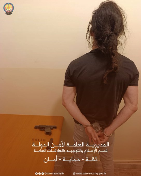 أفادت المديرية العامة لأمن الدولة اليوم الاثنين، بأن دورية من مكتب طرابلس الإقليمي تمكّنت بتاريخ 11-4-2026 من توقيف المدعو (ع. ح. ح)، المطلوب بجرم الاتجار بالمخدرات، وذلك بعد قيامه بشهر سلاح حربي وترويع المواطنين في عدد من أحياء مدينة طرابلس.