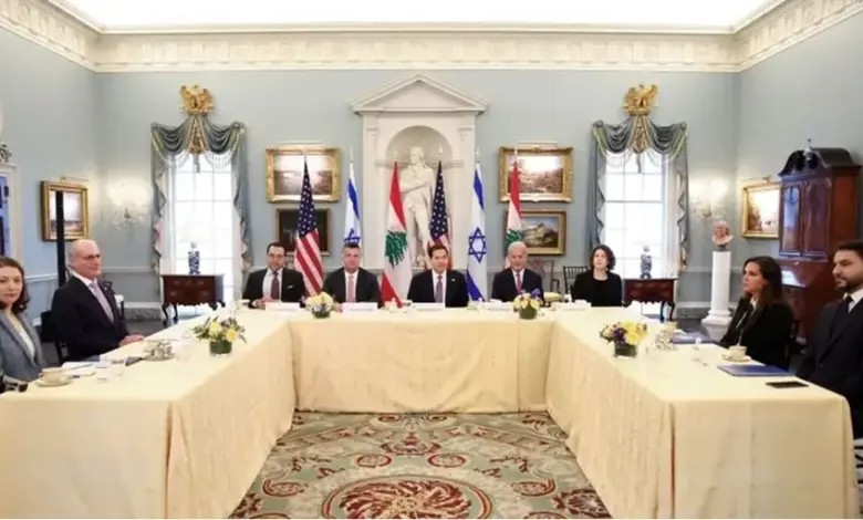 فعلى وقع الصليات الصاروخية باتجاه مستوطنات الشمال، دخل الوفدان اللبناني والاسرائيلي، برعاية اميركية، إلى قاعة الاجتماعات، بعد صورة تذكارية للمشاركين، لم تتخللها اي مصافحات، وهو ما أثار انزعاج الوزير روبيو، الذي استبدل مكان السفيرة اللبنانية، التي كان يفترض أن تقف إلى جانبه خلال الصورة بالسفير عيسى، وفقا لمصادر خاصة، قبل أن يدلي بتصريح مقتضب، أكد فيه أن «المحادثات الإسرائيلية اللبنانية فرصة تاريخية، تهدف إلى وضع أسس سلام دائم ومستقر يضمن الأمن والازدهار للمنطقة».