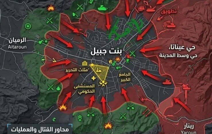 لوضع الميداني في بنت جبيل وفقا للخريطة المرفقة